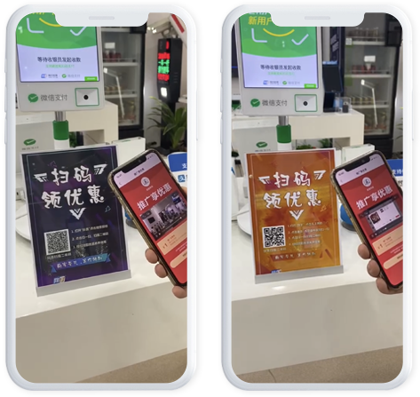 顾客在消费时,扫码商户提供的优惠 推广码,自动发布商家预设视频,获 得商家前置优惠;当前:顾客为商户在短视频平台上做了定位曝光,通讯录曝光,特 色产品与品牌曝光;短时间内可引爆同城,向网红店挺进。